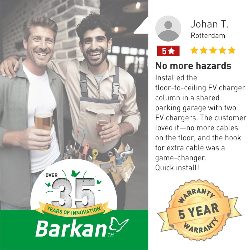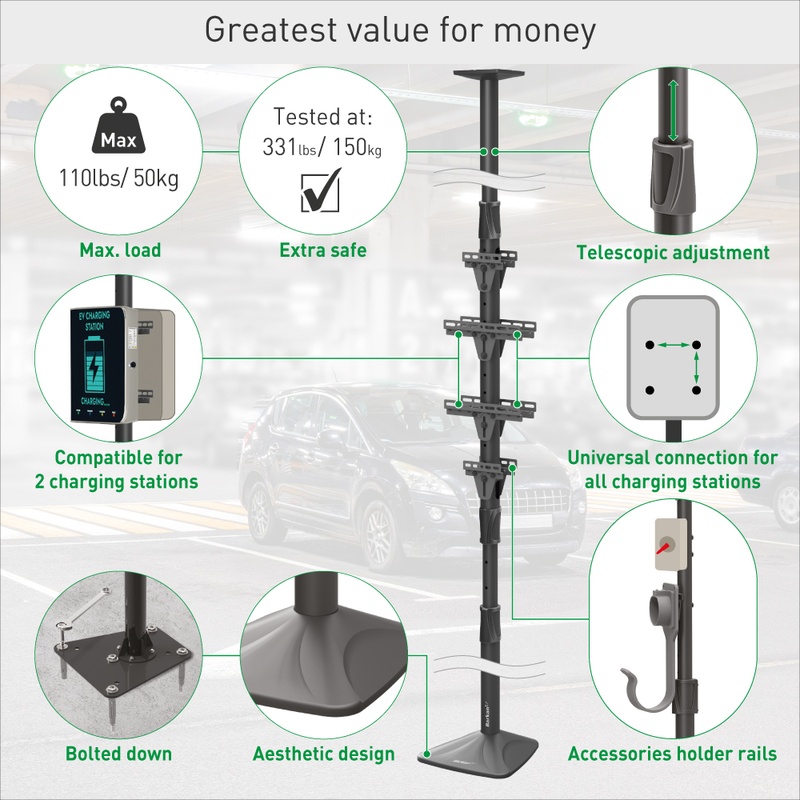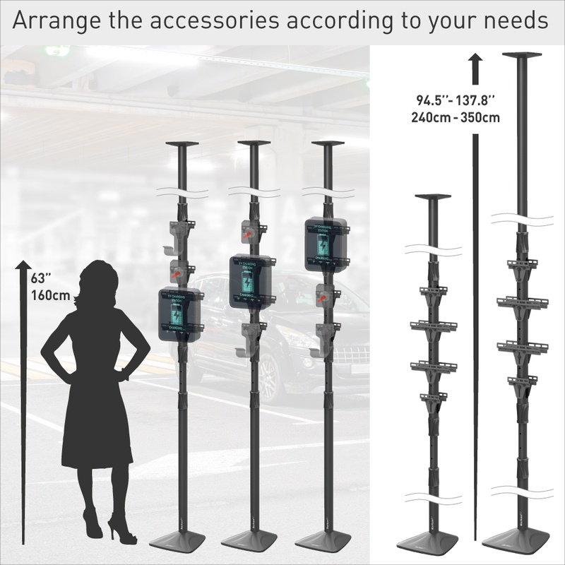 Elegant Ceiling-Floor Solution: A sleek and accessible option for installing electric vehicle charging stations, without the need for custom fabrication or welding. Affordable pricing and immediate availability.