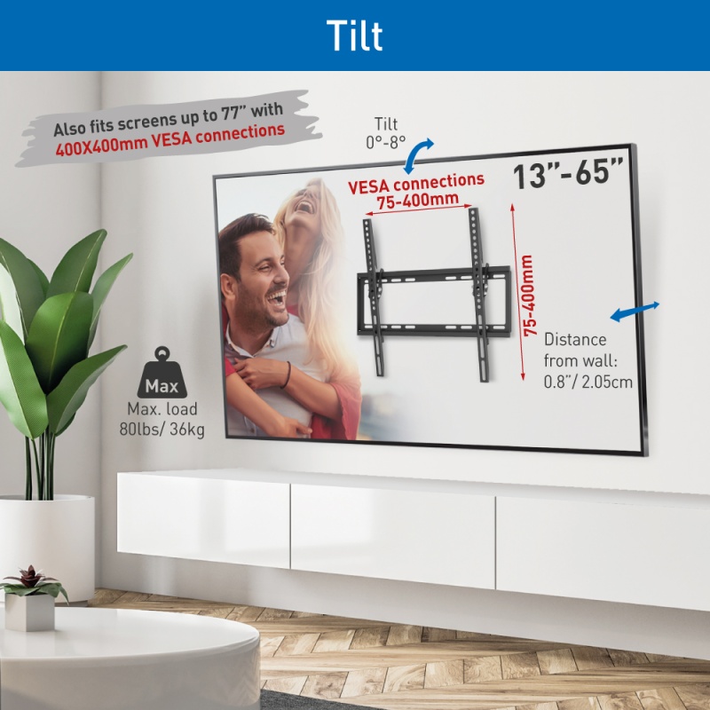 Fikseeritud ja kallutatav (kuni 8°) seinakinnitus 13"-65"" teleritele ja monitoridele